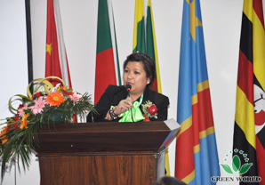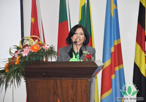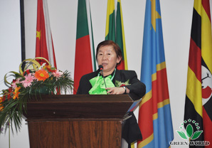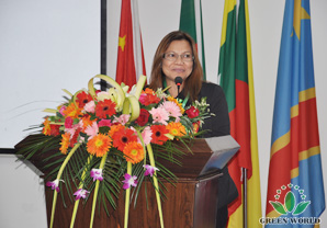 Représentante de distributeurs excellents de zone chinoise Madame Cheng Jing prend la parole.