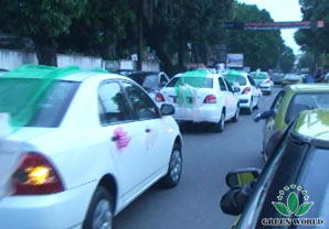La voiture de Green World a pris un défilé dans la rue