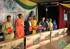 Dans les activités du décernement suivantes, prix de magasin spécialisé, prix de distributeur de niveau dèétoile, prix de voiture, prix de voiture de luxe, prime de villa ont gagné beaucoup d’applaudissements et d’acclamations et ceux qui ont poussé l’ambiance de cette réunion à l’apogée. Cette réunion a compris trois étages, prix de magasin spécialisé, prix de niveau d’étoile et prix spécial. Premier étage : 25 prix d’argent de magasin spécialisé, 18 prix d’or de magasin spécialisé, prix de diamand de magasin spécialisé, ils ont gagné KENWOOD pressoir , PANASONIC four à micro-ondes et LG42 téléviseur. Deuxième étage : il y a 74 distributeurs de 8 étoiles, ils ont respectivement gagné une médialle d’or, des distributeur de niveau de directeur et de directeur général ont respectivement gagné de différents niveaux de médailles en cristal, le prix le plus haut niveau est gagné par un boutiquier NO. 006 Mademoiselle. NGOZI . Troisixème étage : il y a 364 distributeurs gagnant le prix de voiture, 8 distributeurs gagnant le prix de voiture de luxe, 4 distributeurs gagnant la prime de villa coûtant 150000 dollars. Totalement plus de 400 distributeurs ont gagné le prix, tous ces prix ont élevé l’enthousiasme des distributeurs sur les affaires et les produits de Green World, ils ont chanté et dansé. Cette réunion est pleine de la joie et du bonheur.