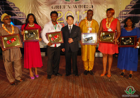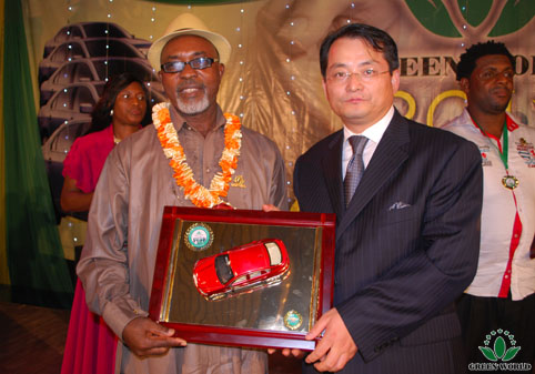 Directeur de la filiale de Green World à Lagos du Nigeria Jia Lizheng décerne le prix de voiture
