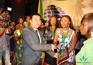 Pour le moment, la présidente de Groupe Green World Madame Deming Li a donné le droit à vice-président de Groupe Green World, président de région africaine Monsieur Liangjun Zhang de décerner tous ces prix.