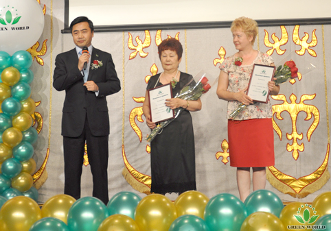 Au cours de la cérémonie d'inauguration, Vice-Président de Groupe Green World, Président de Green World Europe-Asie Monsieur Yanguo Chen a transmis des félicitations de Présidente de Groupe Grenn World Madame Deming Li sur l'inauguration de la filiale de Groupe Green World au Kazakhstan, elle a encouragé aux distributeurs de bien travailler, d’établir l’équioe de distributeurs et d’élever le brillant exploit du marché du Kazakhstan! Directeur de la filiale de Groupe Green World au Kazakhstan Monsieur Sergei a pris des paroles qu’il irait servir tous les distributeurs de tous ses efforts et offrir de bonnes conditions pour développer les affaires de Green World!