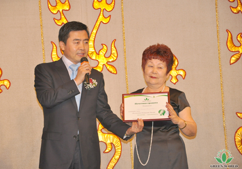 Directeur de la filiale de Groupe Green World au Kazakhstan Monsieur Sergei décerne le prix à la gagnante du réseau standard