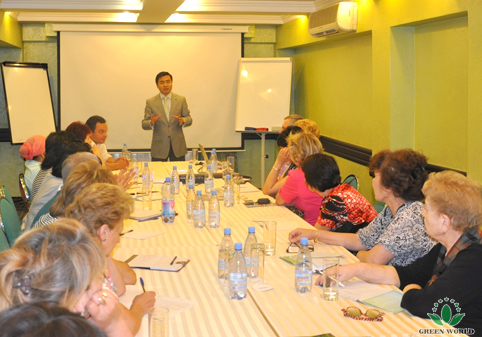 La cérémonie d'inauguration de la filiale de Groupe Green World au Kazakhstan a encouragé les distributeurs. Pour bien résumer le passé et développer l’avenir, elle a organisé la réunion de formation au 7 juillet. Vice-Président de Groupe Green World, Président de Green World Europe-Asie Monsieur Yanguo Chen a présenté la situation du marché international de Groupe Green World aux distributeurs du Kazakhstan. Directeur de la filiale de Groupe Green World au Kazakhstan Monsieur Sergei a présenté la resource du marché au Kazakhstan, le leader de distributeurs de haut niveau de la filiale à l’Ukraine Monsieur Ruslan a pris des paroles pour offrir l’expérience précieuse au développement de la filiale au Kazakhstan dans l’avenir.