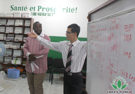 Directeur de la filiale de Green World au Congo-Brazzaville Monsieur Yongjun Deng prend des paroles, en même temps, il analyse le réseau et la formation du maintien du réseau