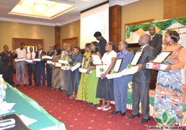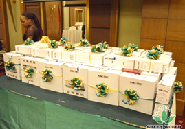 Lors de la réunion, on a décerné le prix du développement rapide, le prix du voyage internatioanl et le prix de la voiture, etc.soit 70 DVD, 7 LCD téléviseur, 5 prix du voyage international et une voiture.ces excellents distributeurs qui ont gagné le prix du voyage international peuvent participer aux activités du voyage durées 7 jours en octobre. On a décerné encore les certificats pour tous les gagnants dans le but d’ honorer leurs contributions à Groupe Green World.