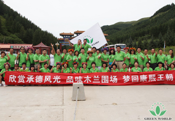Du 6 au 9 août 2013,les excellents distributeurs de Groupe Green World Chine ont commencé leur voyage à Cheng De, sous la direction de vice président de Groupe Green World Chine Monsieur Yifan Wang et le personnel, plus de 60 excellents distributeurs ont passé 4 jours joyeux.
