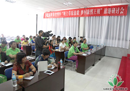 Le 8 août, les distributeurs sont venus dans la salle de réunion de l’hôtel où ils ont habité pour participer à la conférence《Chanter sur BaShang et rêver de la dynastie KangXi》. Cette conférence est présidée par professeur Yongming He, directeur du marché En Bo et professeur du département éducatif Deyin Wang, ils ont fait la formation sur l’attitude des gens de Green World et la construction de l’équipe, ce qui a élevé le niveau d’activité et a renforcé la force centripète et la solidarité.