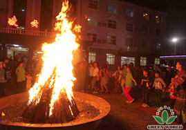 La nuit est tombée, tout le monde a pris le dîner à l’hôtel LingYun qui est en montagne de 1700 mêtres de haut.Tout le monde a apprécié les spectacles locaux au dehors de l’hôtel et a chanté ensemble les mains dans les mains, l’air est plein de la chanson.Par ailleurs, Professeur Yinfeng Fan a chanté 《难忘今宵》, une chanson chinoise.