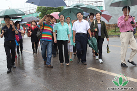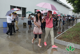Dix heures cinquante 5 septembre, plus de 80 distributeurs de Green World Chine sont arrivés au parc industriel de high-tech de l'agriculture moderne de l’hôtel 4 étoiles se trouvé Baima commune à Lishui de Nanjing.Dans la salle de réception, présidente de Groupe Docteur Deming Li qui est venue de revenir des Etats Unis a accueilli les familles de Green World, tout le monde a visité l’usine de Groupe de Mûre et le chantier en construction de Groupe Green World sous la pluie et sous la direction de Présidente Deming li, assistante Ying Liang et vice-président de Green World Chine Monsieur Yifan Wang et vice-présidente exécutive Madame Aili Wang