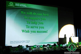 La réunion d’honneur 《étoilée》au Pakistan en 2013 est terminée avec succès, elle a illuminé des rêves de chaque distributeur dans leur coeur. La filiale de Groupe Green World au Pakistan irait prendre un stable et durable développement sous une nouvelle forme.