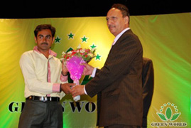 Directeur de la filiale de Groupe Green World à Rawalpindi Monsieur Tahir décerne le prix aux distributeurs 5 étoiles