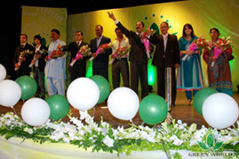 Le 8 septembre 2013, la réunion d’honneur 《étoilée》de la filiale de Green World au Pakistan a eu lieu à la halle de l’institut Hali qui se trouve au centre-ville de Lahore, l’équipe de gestion de la filiale de Green World au Pakistan et 500 distributeurs venant de 4 villes importantes, telles que Rawalpindi, Lahore, Multan, Karachi,et de moyennes et de petites villes, telles que Swat, Peshawar, Oaxaca, Faisalabad se sont réunis ici pour participer à cette grande réunion.