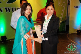 Directrice de la filiale de Green World au Pakistan Madame Fengqi Liu décerne le prix au distributeur 7 étoiles Docteur M Habib