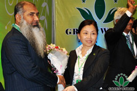 Directeur de la filiale de Groupe Green World à Rawalpindi du Pakistan Monsieur Tahir décerne le prix au chef du magasin spécialisé excellent Docteur M Habib, décerne le prix au distributeur le plus potentiel Monsieur M Khalil, décerne le prix du présentateur excellent au Docteur Shahid qui est un distributeur 6 étoiles pour honnorer leurs contributions et leurs brillants résultats.