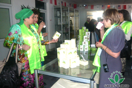 Dans le but d'amener de meilleure expérience aux distributeurs, on a spécialement mis dans le hall d'exposition du produit. Les interprètes et le personnel de recherche ont fait une explication détaillée sur les caractéristiques de Tourmaline oreiller de résilience, Tourmaline couette en laine et Tourmaline matelas de thérapie, etc. Après avoir vu des produits de Green World de haute qualité, tous les distributeurs ont donné pouces et exprimé qu'ils ont vraiment senti le charme des produits de Green World, sans exagération, mais avec l'expérience personnelle et leurs effets véritables.
