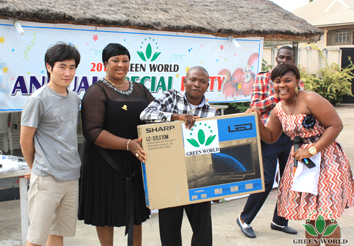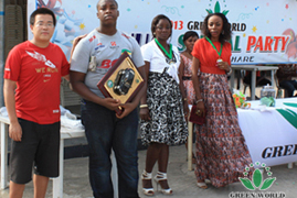 M. LZJia, directeur général dela filiale de Groupe GreenWorld à Lagos du Nigeria, a remis des médailles et des coupes pour lesdistributeurs avec des performances exceptionnelles en 2013. Il les aencouragés à obtenir de meilleures performances grâce à la coopération sincère.Mme Ngozi, la chef de distributeur principal de GroupeGreen World du Nigeria, a prononcé un discours passionnant impromptu danslequel elle a passé en revue l'énorme succès qu'elle avait obtenu depuis sonarrivée à Green World, elle a aussi exprimé sa sincère gratitude à Green Worldpour sa plate-forme d'affaires et ses produits de haute qualité et a égalementremercié Green World d'avoir à la fois la santé et de la richesse pour lepeuple nigérian.