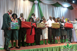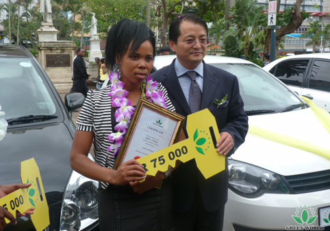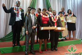 M.David L.Zhang, vice-président de Green World Group et président de Green Afrique,décerne le prix du voyage international et le prix de voiture commerciale auxlauréats et prend des photos de groupe avec les gagnants.