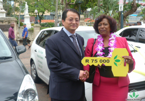 Le7 décembre 2013, la 6ème conférence de l’attribution de voitures de Green WorldAfrique du Sud a été grandement tenue à Durban-la belle ville côtière del'Afrique du Sud. M. David L. Zhang, vice-président de Groupe Green World etprésident de Green World Afrique, Mme Connie Kang, directrice générale de lafiliale de Green World de Durban en Afrique du Sud, M. Glory Guo, directeur généralde la filiale de Green World de Johannesburg en Afrique du Sud, M. Bruce Huang,directeur général de la filiale de Green World de East London en Afrique duSud, M. Mohanlali, chef de Durban City Hall et M. Naidoo, porte-parole du mairede Durban, ont été invités à la conférence.Plus de 1400 distributeursdans plus de 10 pays tels que l'Afrique du Sud, le Zimbabwe, le Mozambique, leSwaziland, le Lesotho, le Botswana, le Malawi ont assisté à cette grandecérémonie.