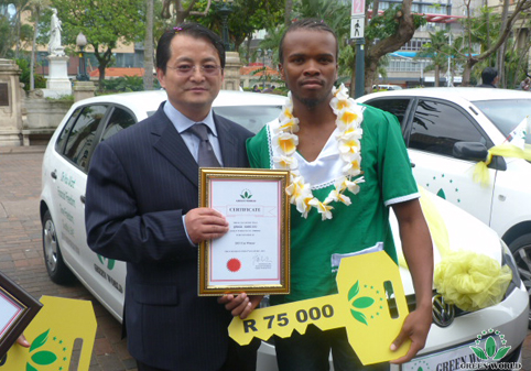 Lorsde la conférence de l'attribution de voitures, le prix de star de distributeur del'année de l’Afrique du Sud a été décerné. Le gagnant est M. Nkiwane MTHABISI,chef de l'équipe la plus active qui a atteint une énorme performance cetteannée. Dans son discours, il a dit avec excitation que le mouvement en Afriquedu Sud pour la liberté et la démocratie, dirigée par M. Mandela, ex-présidentde l'Afrique du Sud, avait obtenu un succès et Green World et des distributeursde Green World feraient contribution au développement économique de l’Afriquedu Sud et à la santé des personnes de l’Afrique du Sud.