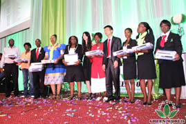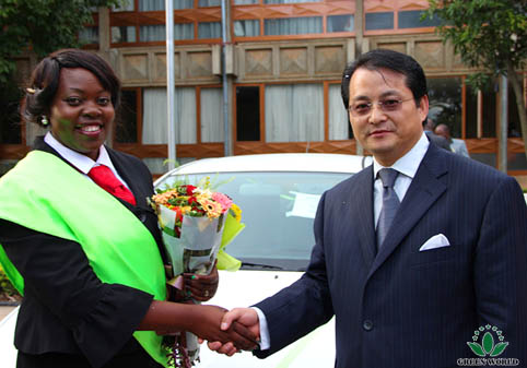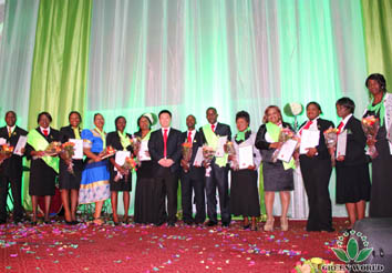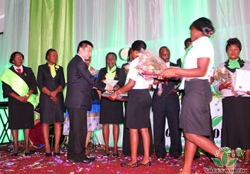 M.William Zhang, directeur général de la filiale en Zambie, présente descertificats à 17 distributeurs qui ont gagné le voyage internationale