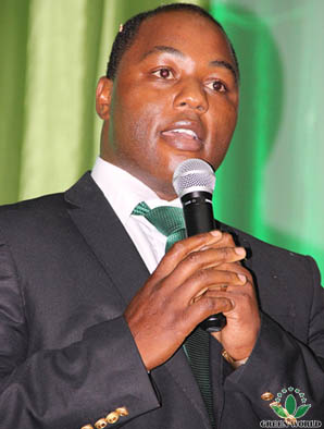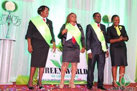 MmeNgidi Thembisile, distributrice de haut niveau de l’ Afrique du Sud de Groupe GreenWorld, et M. Tendai Chinoperekwei, distributeur de haut niveau et conférencierinternational du Zimbabwe de Green World, font respectivement des discours quiont inspiré grandement les distributeurs présents