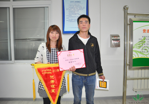 Shuai Weijie (à gauche) et Qi Biao (à droite), les employés de notre société, respectivement remporté les titres de《Excellent Dortoir》 et 《Excellent individu》 de la gestion d'appartement de l'année 2013