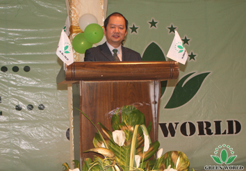 Mr.Tuk Tuk, le représentant méritoire de Green World, fait un discours sur le développement et l'expansion du marché des pays voisins