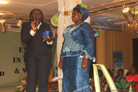 Mme Marie Ngameloua a remportéle prix d’excellent propriétaire du magasin spécialisé(sa sœur prononce un discours d'acceptation en son nom)