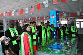 Excellents distributeurs visitent le modèle de la table de sable de Green World base à Nanjing