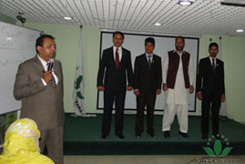 Du 28 mai au 1 juin 2014, la filiale de Green World au Pakistan a tenu la formation de maître de conférences de première session durée de 5 jours à Rawalpindi. Mme Liu Fengqi, directrice de la filiale au Pakistan, M. Moeen Malik, directeur régional de formation en Asie du Sud, Mme Wang Qian, chef du département de la formation et de l’éducation, M. Budiman Prasetyo, le maître de conférences du département de la formation et de l’éducation ont fait une formation systématique pour 30 maîtres de conférences candidats venant de différents endroits du Pakistan.
