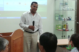 L’adjointe de présidente de Green World Mme Liang Ying a fait une explication détaillée sur la série de bleuets, les distributeurs ont eu un grand intérêt, posé des questions et fait des achats après la réunion.