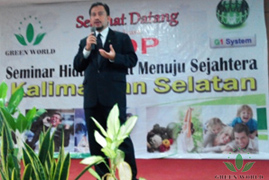 14 juin 2014, Réunion de formation sur les produits convoquée par la filiale de Green World à l’indonésie s'est déroulée à Banjarmasin avec succès. La réunion est organisée par M. EfsilonKaFatoni, le directeur de l’équipe de G1 systèmes, présidée par M. Tommy, un consultant en santé. Des chefs d'équipe régionale à Banjarmasin M. MuhammadBaikani, M. Yusran, distributeur de haut niveau, M. JapuriArdy, Mme NaniSasmita, M. Husseini, M. Rudi, M. Arsimentina, M. IrwanRifanidll, M. Rahman Sujati et 50 distributeurs ordinaire ont assisté à cette réunion.