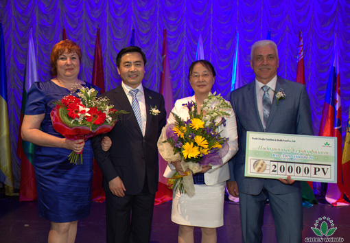 Dans des acclamations de tous les distributeurs, des élites du marketing sont allés sur la scène pour accepter la grande cérémonie de remise des prix ! Au cours de la réunion annuelle, on a attribué le prix de Maître de Sapphire, le prix de Maître de Rubis, le prix du voyage en Chine, le prix de Champion de ventes, le prix de Maître d'émeraude, le prix de Maître de Diamond de 1 étoile, le prix de Maître de diamant de 2 étoiles, le prix de voiture, il y a des dizaines de prix comme récompense.