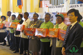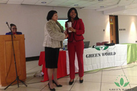 Ms.NYAMI (au milieu), une excellente distributrice gagnant le prix de Voiture, est montée sur la scène pour recevoir son prix avec ses familles. Au moment de la remise du prix, elle ne put retenir des larmes de bonheur. C'est la première fois pour elle de gagner si grand honneur dans Green World.