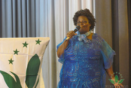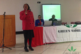 Mme THEMBI Ngidi, une distributrice de haut niveau, a fait un discours stimulant et a présenté sur place la prime aux nouveaux distributeurs. Elle a encouragés tout le monde que Green World apporterait des avantages infinis à tous tant qu'ils travaillaient dur.