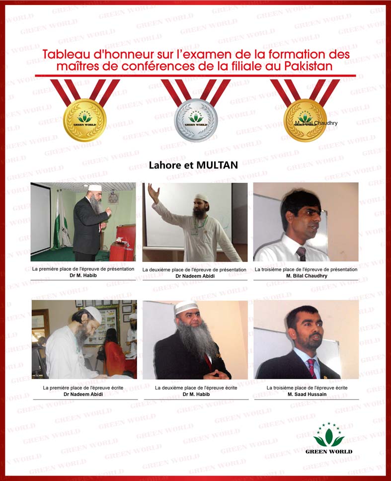 Tableau d'honneur sur l’examen de la formation des maîtres de conférences de la filiale au Pakistan