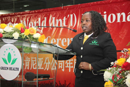 M. David L. Zhang, vice-président de Green World et président de Green World Afrique, a fait un discours inspirant. Au nom du Dr Deming Li, présidente de Green World, M. David L. Zhang a d’abord souhaité une chaleureuse bienvenue aux distributeurs et a exprimé sa gratitude pour leur travail acharné. Ensuite, M. David L. Zhang a partagé avec toutes les personnes les réalisations exceptionnelles de Green World et les réalisations remarquables du marché de Green World Afrique en six ans: Green World a créé des filiales pendant plus de 20 pays africains et a eu plus de 1 million équipes de marketing; Green World est devenu une marque de ménages en Afrique et a apporté de grandes contributions à la cause et à l'emploi de la santé de la population locale. Jusqu'à présent, Green World a présenté plus de 2000 prix de voitures et plus de 20 prix de villas aux distributeurs supérieurs africains pour féliciter les extraordinaires contributions qu'ils ont faites à Green World. M. David L. Zhang a également fait un résumé sur le futur plan de la stratégie de marché de Green World Afrique et a proposé l’objectif et l’exigence sur le marché de la filiale au Kenya. Le discours de M. David L. Zhang a remporté des applaudissements de tous les distributeurs, les distributeurs étaient fiers d'être un membre de la grande famille de Green World.