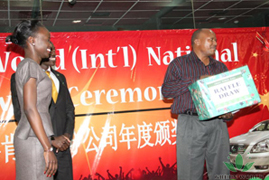 M. David L. Zhang a présenté le prix de voiture d’affaires à Mme Jane Kitavi