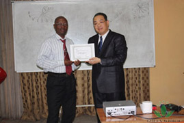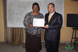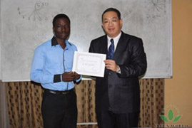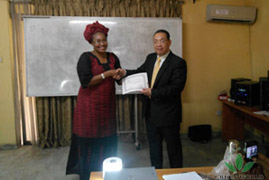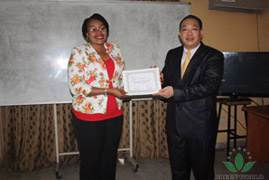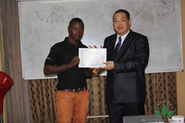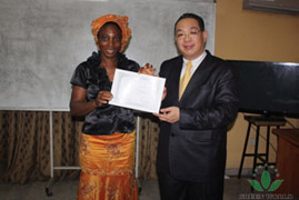 M. Budiman Prasetyo a décerné le certificat GT2 formation à Dr faveur, une excellente distributerice de la filiale de Green World à Lagos