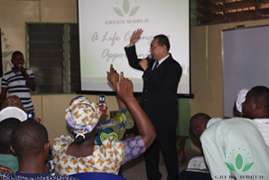 Répondant à la demande de M. Joseph Apoleye, un boutiquier, une équipe de la filiale de Lagos se dirigea vers la ville Ogbomosho. M. Budiman Prasetyo, un directeur de la filale de Green World Afrique, avec Mme Alice Xu, une formateur du département de la formation et de l’ducation de Green World et a pris 4 heures de route de Lagos à Ogbomosho pour fournir un séminaire de l'entrepreneuriat.