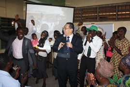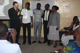 Une foule de spectateurs ont accueilli l'équipe de formateurs de Green World. Le séminaire de l'entrepreneuriat a été ouvert par une allocution de bienvenue par le propriétaire du magasin M. Joseph Apoleye.