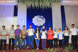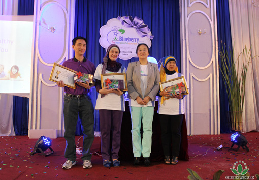 Mme Deming Li, présidente de Green World a décerné le prix d'or du magasin spécialisé, le prix d'argent du magasin spécialisé et le prix de bronze du magasin spécialisé à M. Yenny Wibowo (à gauche), Mme Yuliza Mugi Hartika (deuxième à gauche), Mme Marwa La Cola (à droite) , ils ont vendu les produits de bleuets.