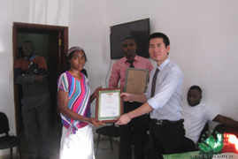 Directeur informatique de la filiale de Green World à l’Angola M. Liu Xiaowei a décerné des certificats et des prix pour les distributeurs