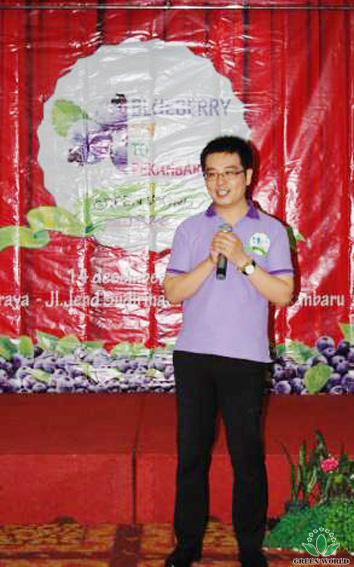Directeur de la filiale de Green World en Indonésie M. Junxian Song a pris des paroles, Mr.Song a dit: Je vous remercie de préparer ces préparatifs complets pour cet activité, et aussi vous remercie de la confiance sur Green World et lamour sur des produits de bleuets de Green World. Riau est l'une des provinces les plus riches en Indonésie, la réserve pétrolière riche et des ressources de l'huile de palme ont fourni une riche vie pour les personnes ici. Toute Pekan ville était propre, pleine de saveur moderne. C’était que les résultats de dur labeur et de sagesse des gens qui travaillaient. Des ressources naturelles abondantes nous fournissaient un bon cadre de vie, mais aussi nous a offert une formidable opportunité. J’espère que la majorité de distributeurs et d’amateurs de produits du bleuet à Riau pouvaient redoubler d'efforts pour mettre notre meilleure promotion des produits du bleuet à plus d'amis, afin que davantage de personnes en bénéficiaient.