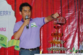 Le consultant principal en santé de la filiale de Green World en Indonésie M. Tommy a introduit des connaissances de bleuets et des produits de bleuets de Green World, et a fait une démonstration expérimentale merveilleuse sur l’antioxydant de bleuets à travers 《Bleuet Breuvage》