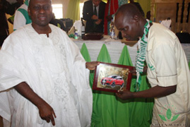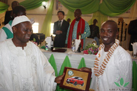 Oba David Akande Onileayo Onimolete, un de membres de la famille royale Molete Land Ogbomoso, a célébré la réunion du décernemnt de la voiture avec des distributeurs