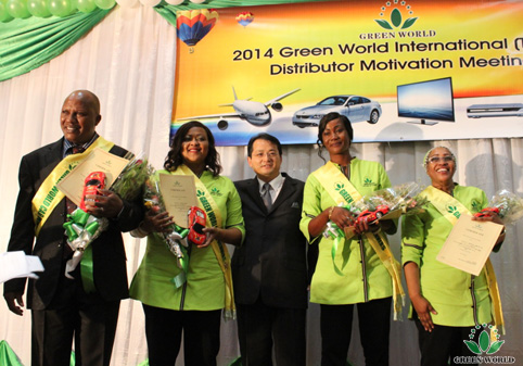 Le décernement du prix de la voiture commeciale a poussé l'atmosphère de la réunon au sommet. 4 distributeurs excellents Mbuya, HLIDA, Hansha, Cecylia sont allés sur la scène avec de chaleureux applaudissements pour accepter leurs récompenses. C’était la première fois dans l'histoire de la filiale de Green World en Tanzanie que 4 voitures commerciale étaient décernés en une année naturelle. Mme Thembi Ngidi venant de l'Afrique du Sud a apporté un magnifique discours. C’était une rare chance de savoir Green World de différents aspects.