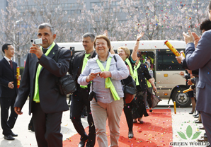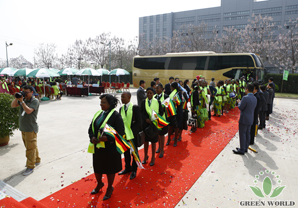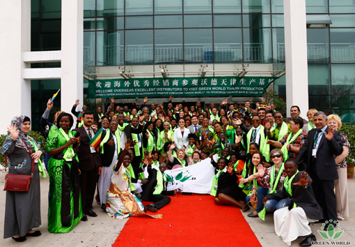 18 avril 2015, le printemps est arrivé, les feuilles étaient vertes. La base de Tianjin en Chine de Green World était plein de la joie. Les 129 excellents distributeurs venus d'Afrique, d'Europe-Asie et d’Asie du Sud, au total 18 pays, ont visité la base de Tianjin! Comme l'hôte, la base de Tianjin a donné un accueil chaleureux et l'hospitalité sur l'arrivée de distributeurs. Présidente de Green World Mme Deming Li a salué personnellement les excellents distributeurs d'outre-mer!