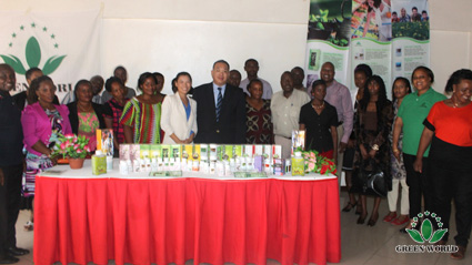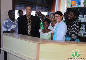 Le 12 mars 2015, M. Budiman, chef du département de l'éducation de Green World Afrique, avec Mme Masha Ma ont visité la boutique de Madame Anisha à Dar Es Salaam, la capitale de la Tanzanie.
